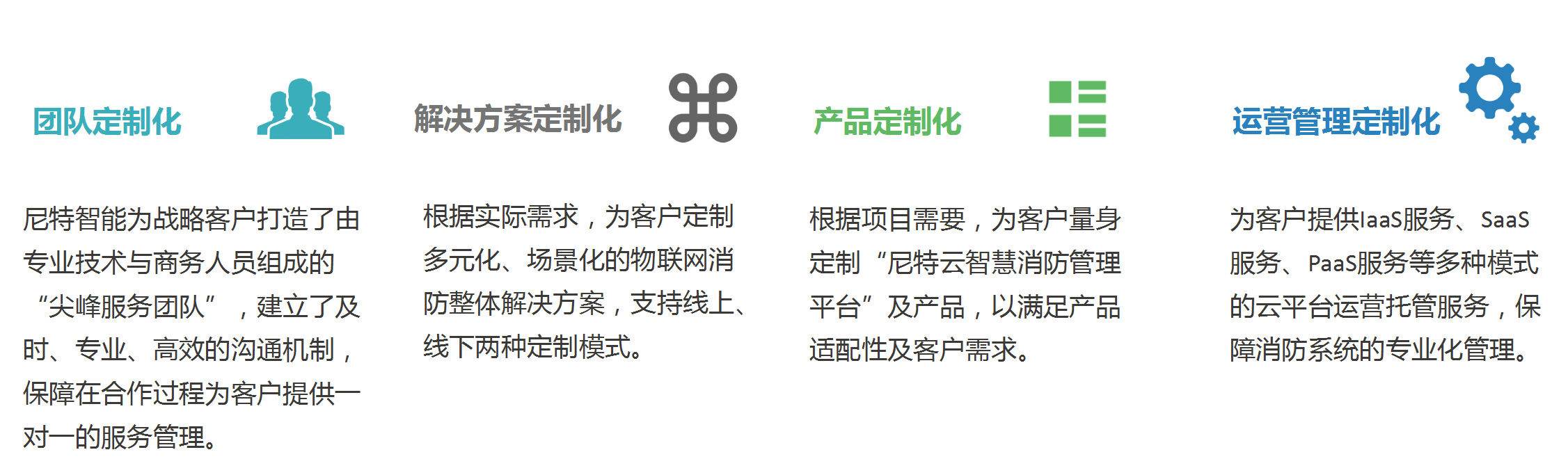 尼特智能將設(shè)備銷售過程轉(zhuǎn)變?yōu)楦采w項目全生命周期的服務(wù)模式,涵蓋方案制定、圖紙優(yōu)化、調(diào)試驗收、上崗培訓(xùn)等基礎(chǔ)內(nèi)容,同時推出以智慧消防云平臺為載體的定制化開發(fā)、系統(tǒng)維護與升級、運營管理等后續(xù)服務(wù),讓服務(wù)更加系統(tǒng)全面。