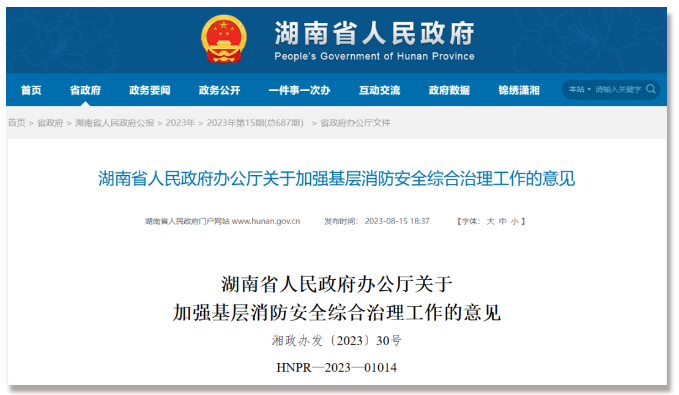 為全面加強全省縣鄉(xiāng)村消防安全體系建設(shè),統(tǒng)籌推進城鄉(xiāng)消防安全綜合治理,夯實火災(zāi)防控基礎(chǔ),根據(jù)《中華人民共和國消防法》《中華人民共和國突發(fā)事件應(yīng)對法》《湖南省實施〈中華人民共和國消防法〉辦法》《湖南省消防安全責(zé)任制實施辦法》等法律法規(guī)規(guī)章和有關(guān)文件規(guī)定,經(jīng)省人民政府同意,現(xiàn)就加強基層消防安全綜合治理工作提出如下意見。
