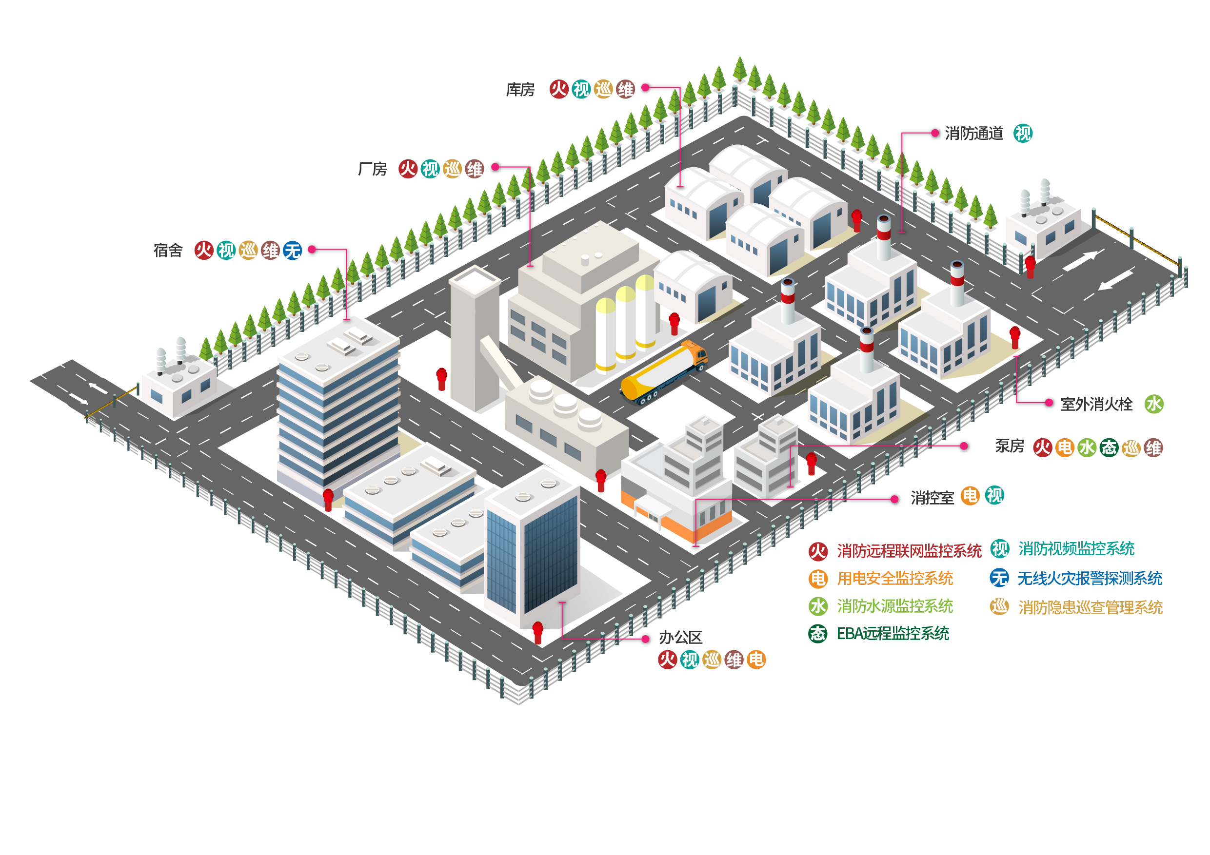 火災(zāi),不僅要‘消’,更重要的是要‘防’。園區(qū)火災(zāi)具有燃燒蔓延迅速、延續(xù)時間長、溫度高輻射性強等特點,增加了滅火救援的難度,因此,加強火災(zāi)防控尤為重要。