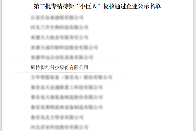 當(dāng)前,“專精特新”發(fā)展方向已經(jīng)成為中小企業(yè)轉(zhuǎn)型升級、轉(zhuǎn)變發(fā)展方式的重要途徑。本次復(fù)核通過專精特新“小巨人企業(yè)”,不僅是對尼特在產(chǎn)品技術(shù)、專業(yè)化程度、創(chuàng)新能力、經(jīng)營管理等專項指標(biāo)上的認(rèn)可,更是對尼特長期以來堅持自主創(chuàng)新的高度肯定。