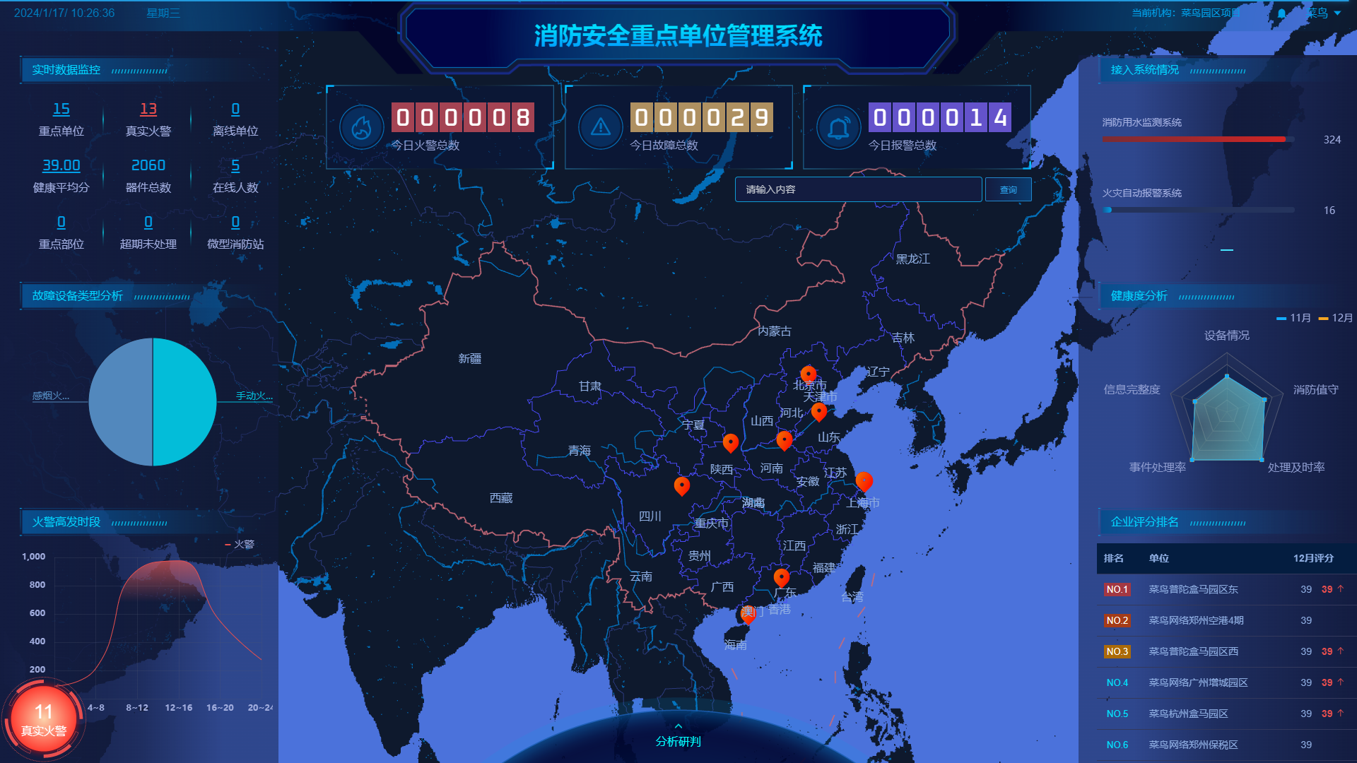 以現(xiàn)代化科技為手段,尼特為菜鳥量身打造了智慧消防解決方案,提供集動(dòng)態(tài)監(jiān)測(cè)、智能分析、風(fēng)險(xiǎn)預(yù)判、專項(xiàng)整治、綜合管理于一體的一站式消防信息化升級(jí)服務(wù),在菜鳥鄭州保稅區(qū)、鄭州空港區(qū)、濟(jì)南歷城區(qū)、??谂R空區(qū)、廣州增城區(qū)等重點(diǎn)園區(qū)及盒馬地塊實(shí)現(xiàn)了廣泛應(yīng)用,為菜鳥構(gòu)建了全面高效可靠的消防安全體系。