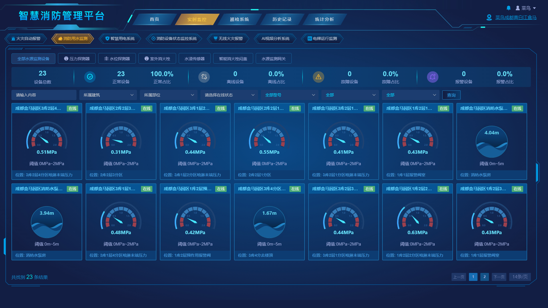 菜鳥全國(guó)園區(qū)消防設(shè)備品牌眾多、聯(lián)網(wǎng)協(xié)議標(biāo)準(zhǔn)各不相同,結(jié)合菜鳥智能化監(jiān)管需求,尼特通過用戶信息傳輸裝置將各園區(qū)原有的火災(zāi)自動(dòng)報(bào)警系統(tǒng)與智慧消防系統(tǒng)進(jìn)行對(duì)接,實(shí)時(shí)采集各種火災(zāi)報(bào)警、建筑消防設(shè)施運(yùn)行狀態(tài),并利用消防管網(wǎng)壓力探測(cè)器、消防水位探測(cè)器,對(duì)各園區(qū)消防給水系統(tǒng)進(jìn)行了多點(diǎn)并發(fā)監(jiān)測(cè)和動(dòng)態(tài)分析,發(fā)生異常時(shí)能夠及時(shí)發(fā)出報(bào)警信息,在尼特云智慧消防管理平臺(tái)上將所有預(yù)警、報(bào)警信息進(jìn)行統(tǒng)一收集、管理,以電話語(yǔ)音、短信、APP推送等多種形式通知至菜鳥平臺(tái)及各園區(qū)相關(guān)部門,實(shí)現(xiàn)了全國(guó)園區(qū)消防一體化管理。
