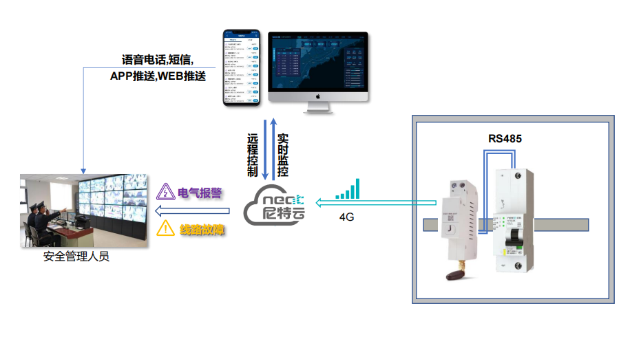 在充電樁或電動車直充位置安裝剩余電流動作斷路器,實現(xiàn)電流、電壓、溫度的實時監(jiān)測及用電量統(tǒng)計、短路保護、過流過載保護、過欠壓保護、過溫保護和本地負載識別,發(fā)生異常時,平臺將第一時間發(fā)出報警信號,可以通過手動或遠程進行分合閘、參數(shù)調整。根據(jù)用戶需求,63A與100A多類型斷路器選配,滿足家用、學校、 商場、園區(qū)、倉庫等場景用電支路保護,確保用電安全。