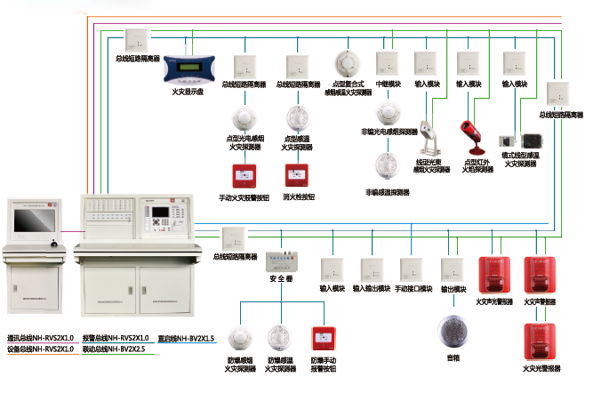 系統(tǒng)以NT8001火災(zāi)報(bào)警控制器和NT8012消防控制室圖形顯示裝置為核心,報(bào)警總線采用成熟的FT-BUS全數(shù)字總線技術(shù),系統(tǒng)內(nèi)設(shè)備總線采用標(biāo)準(zhǔn)CAN總線通信協(xié)議。圖形顯示裝置兼容標(biāo)準(zhǔn)RS232/RS485通訊接口,可實(shí)現(xiàn)與尼特所有消防電氣系統(tǒng)的連接。系統(tǒng)采用多種自測(cè)試、自診斷技術(shù),具有構(gòu)成完整、配置靈活和運(yùn)行可靠的特點(diǎn)。