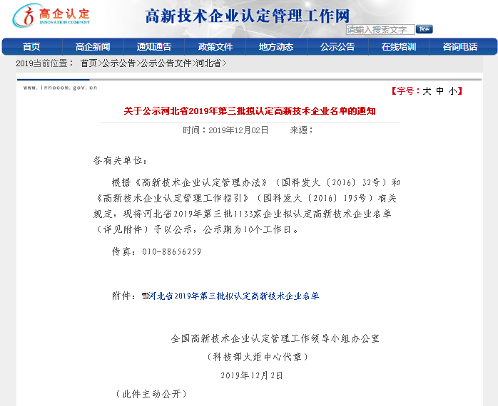 根據(jù)《高新技術(shù)企業(yè)認(rèn)定管理辦法》(國(guó)科發(fā)火〔2016〕32號(hào))和《高新技術(shù)企業(yè)認(rèn)定管理工作指引》(國(guó)科發(fā)火〔2016〕195號(hào))有關(guān)規(guī)定,經(jīng)過(guò)全國(guó)高新技術(shù)企業(yè)認(rèn)定管理小組對(duì)河北省申報(bào)企業(yè)綜合評(píng)定,尼特西普消防技術(shù)有限公司于2019年再一次順利通過(guò)了國(guó)家高企認(rèn)定。
