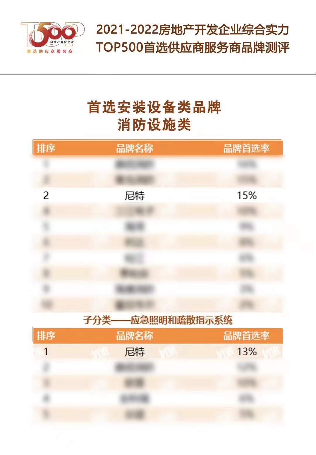 3月29日,中國(guó)房地產(chǎn)開發(fā)企業(yè)綜合實(shí)力測(cè)評(píng)成果發(fā)布會(huì)暨房地產(chǎn)高峰論壇在上海、北京同步召開。尼特憑借優(yōu)質(zhì)的產(chǎn)品和良好的口碑,連續(xù)5年獲評(píng)500強(qiáng)地產(chǎn)首選品牌,首選率持續(xù)上升,“智能疏散”品類榮登榜首!充分印證品牌房企對(duì)尼特產(chǎn)品與服務(wù)的高度認(rèn)可和信賴。