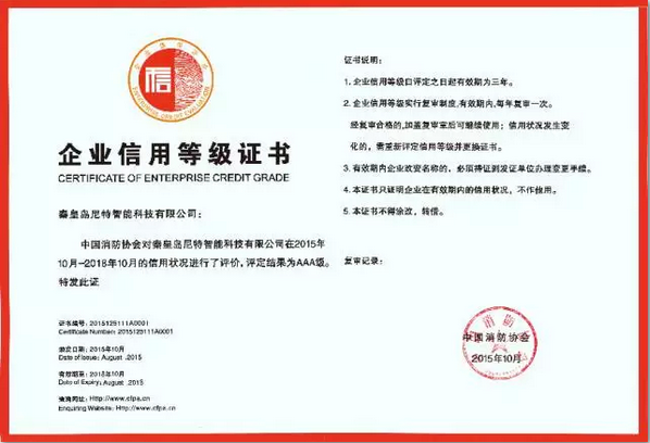 2015年11月,中國消防協(xié)會信用評價等級評選結(jié)果出爐,秦皇島尼特智能科技有限公司被評為2015年度中國消防協(xié)會“中國消防行業(yè)信用等級評價AAA級企業(yè)”稱號。這是中國消防行業(yè)...