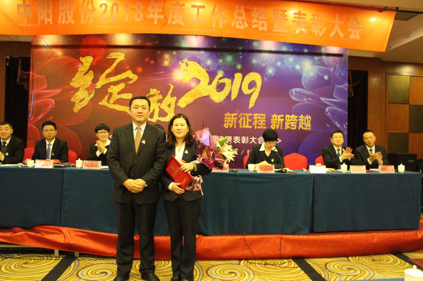 經(jīng)過4個(gè)小時(shí)的會(huì)議,2018年度工作總結(jié)暨表彰大會(huì)圓滿完成。大會(huì)的結(jié)束是我們新征程的開始,“綻放2019 新征程 新跨越”,愿中陽在2019年更上一層樓,愿我們每一位中陽人在新的一年里再接再厲,再創(chuàng)佳績(jī)。
