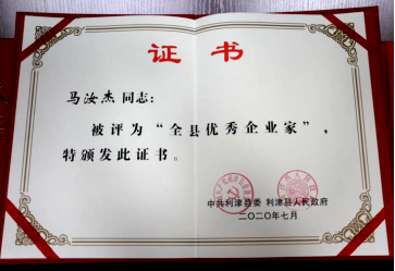 祝賀董事長馬汝杰榮獲“全縣優(yōu)秀企業(yè)家”稱號
